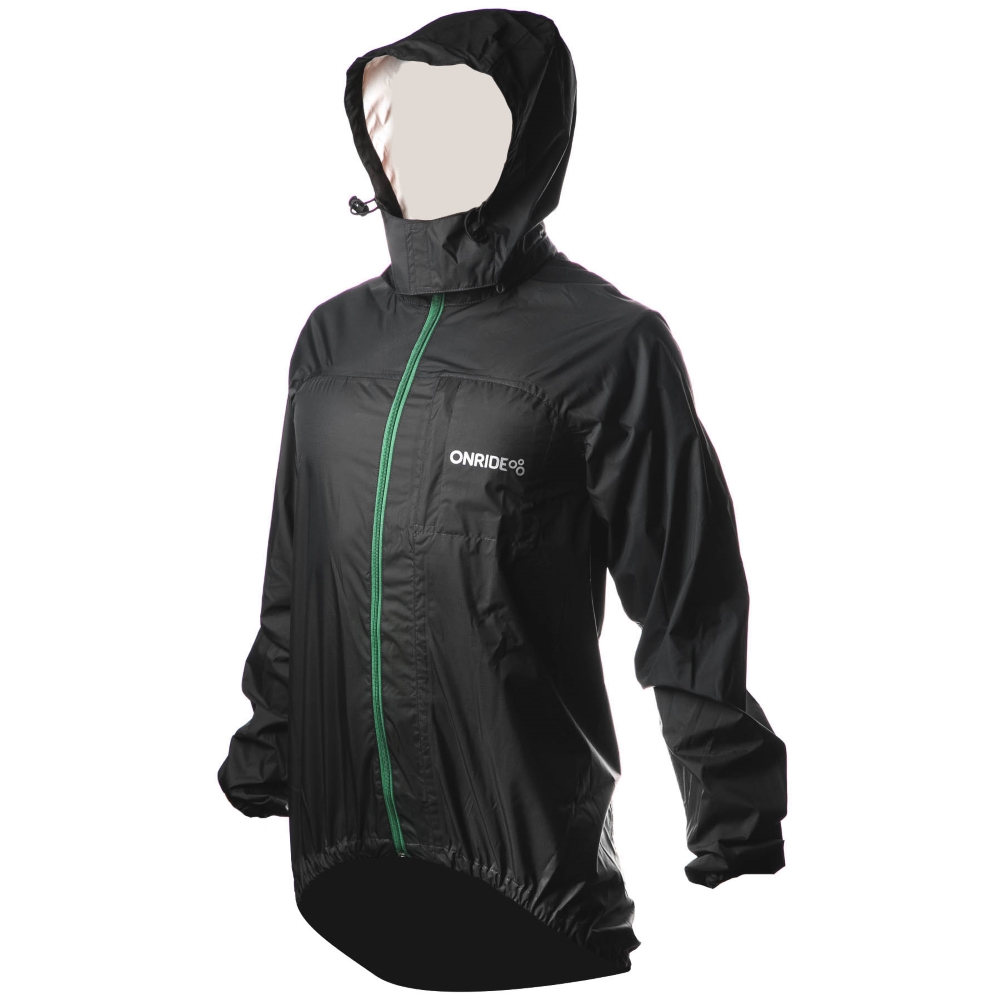 Дощовик з приталеним кроєм та повнорозмірною центральною застібкою "блискавка", рукави реглан, комір-стійка з м'якою тканинною внутрішньою стороною. Конструкція передбачає внутрішню кишеню зліва на грудях. В кишені спеціальна петелька для навушників. Капюшон з еластичним шнуром з фіксаторами та має можливість відстібатись завдяки застібці "блискавка". Отвір з сіткою для циркуляції повітря. Низ виробу та рукавів на еластичній гумовій тасьмі. Шви проклеєні та не пропускають вологу. Низ виробу подовжений на спинці для зручності використання на велосипеді. На спинці нашита світлоповертаюча смуга шириною 25 мм, а також має додаткові вставки в ключових місцях на рукавах з високим коефіцієнтом світлоповертання (400 Кд/лк*м2).
