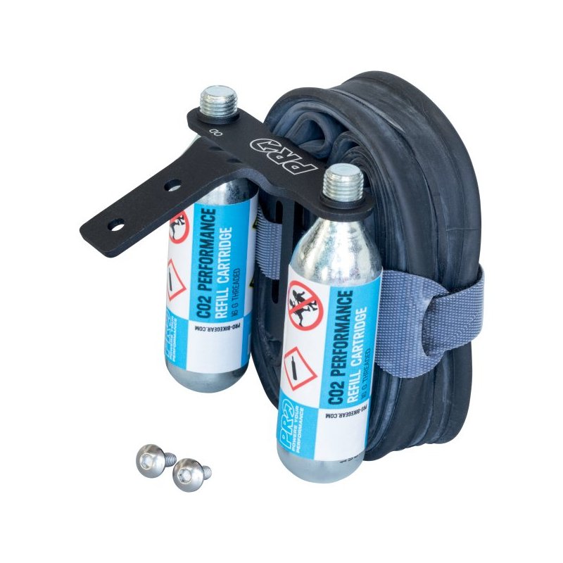 Легкий тримач для 2 балончиків CO₂ з різьбою. Запасна камера може додатково кріпитися за допомогою ремінця на липучці.