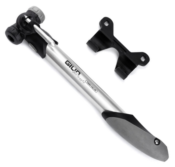 Компактний велосипедний насос в алюмінієвому корпусі. Має подвійну голівку, що сумісна з усіма типами ніпелів без необхідності розбирання.