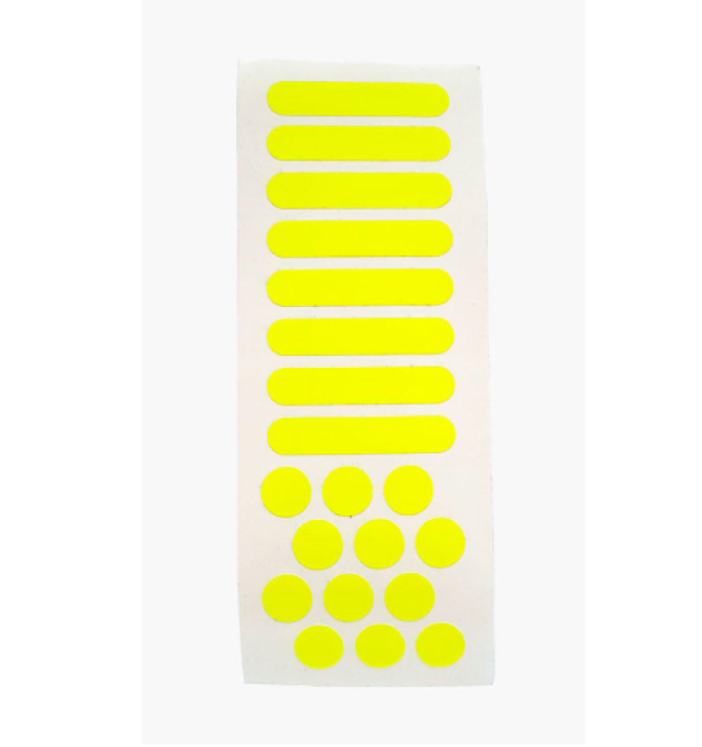 В наборі: 8 довгих наліпок (4,5 x 1см) / 12 круглих (діаметр 1,3см)