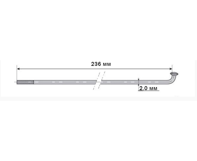 Характеристики:• Материал: сталь;• Сечение спицы 2.0 мм;• Калибр: 14G;• Длинна спицы: 236 мм;• Цвет: серебристый.