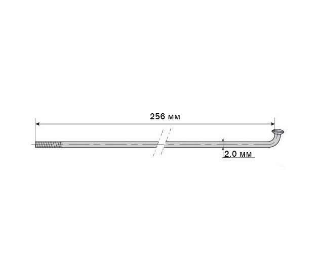 Характеристики:• Материал: сталь;• Сечение спицы 2.0 мм;• Калибр: 14G;• Длинна спицы: 256 мм;• Цвет: серебристый.