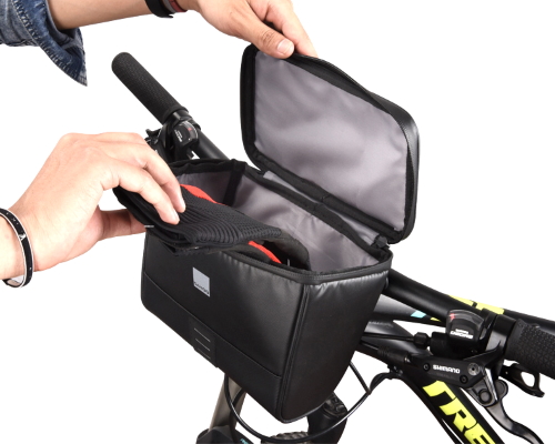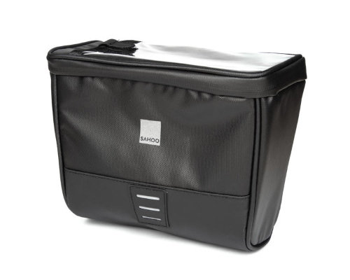 Об'ємна велосипедна сумка на кермо. Верхнє відділення з прозорою плівкою сумісне з гаджетами з сенсорним екраном. Дана сумка не потребує додаткового багажника і сумісна майже з будь-яким велосипедом.