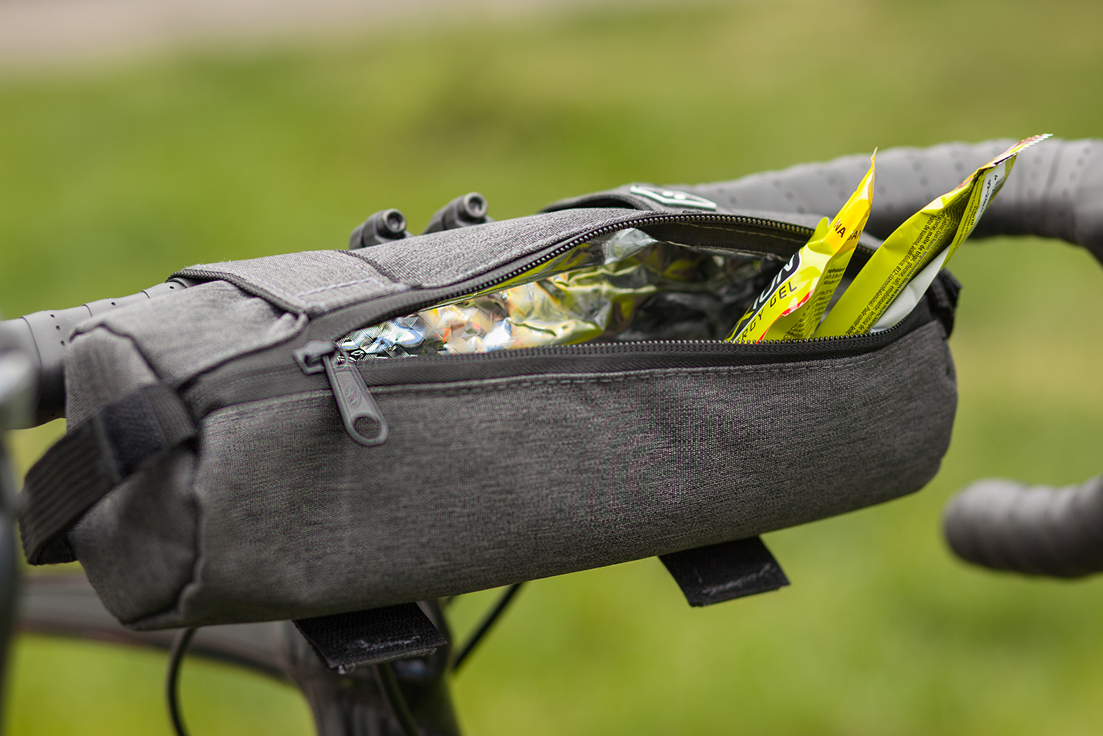 Компактна сумочка, що має кріплення, які можна пристосувати як на кермо, так і на раму.