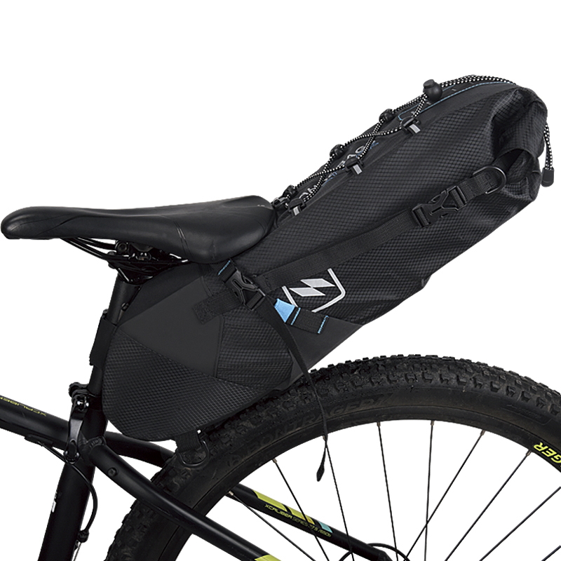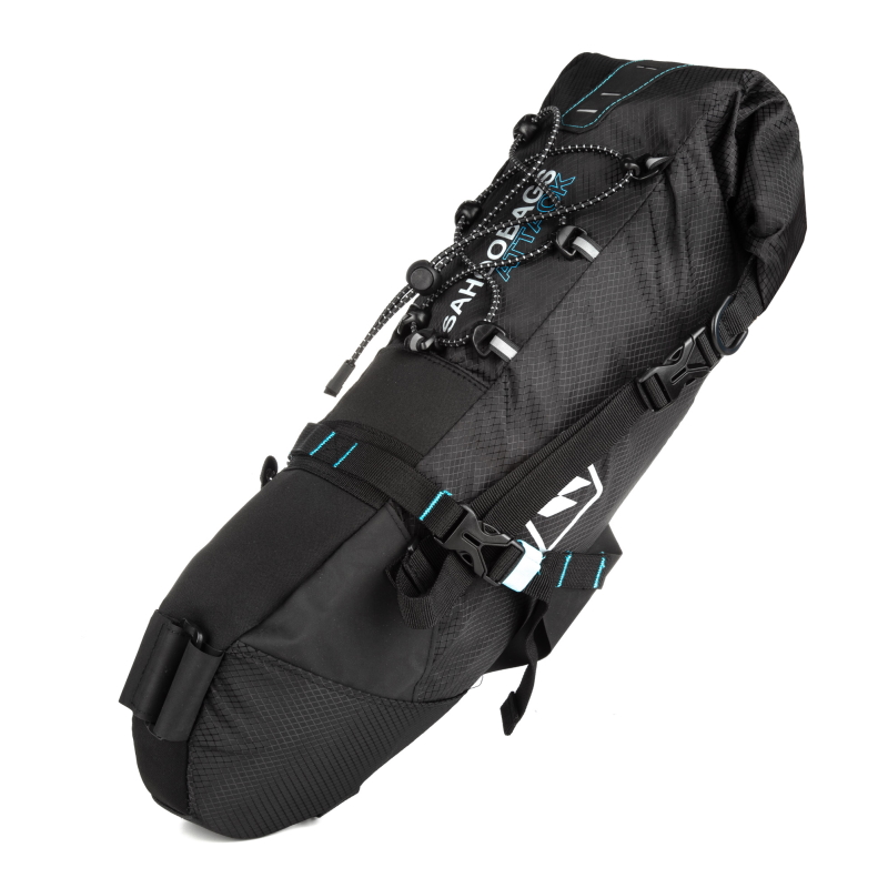 Міцна та стійка до протирання сумка виготовлена з жакардового нейлону та продубльована вологозахисним термополіуретаном з захисними вставками PE для посилення низу. Легко кріпиться до рейок сідла та підсідельного штиря на ремінці з застібками "велкро" та "фастекс". Сумісна з будь-якими рейковими сідлами та підсідельними штирями. Світловідбиваючі елементи на боковинах для поліпшення видимості в темну пору доби. Конструкція і матеріали забезпечують повну герметичність сумки.