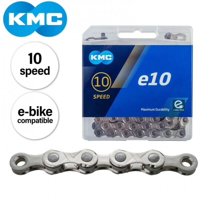 Ланцюг KMC e10 Silver 10 швидкостей 122 ланки срібний + замок