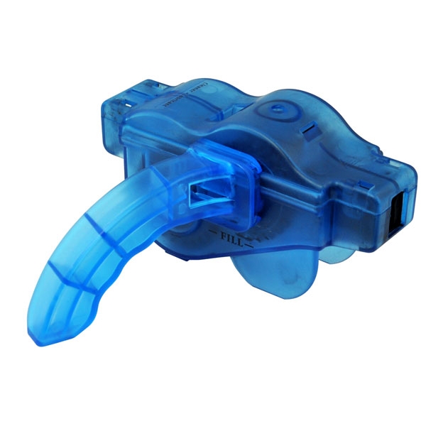Это машинка для чистки и мойки велосипедной цепи и цепь при этом с велосипеда не снимается.