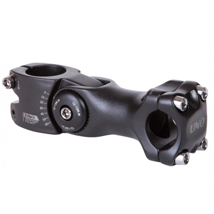 Kalloy "UNO" AS-822 - алюминиевый вынос руля c изменяемым углом наклона. Чтобы отрегулировать угол наклона необходимо ослабить болты в конструкции выноса, изменить наклон и затянуть болты в нужном положенни.