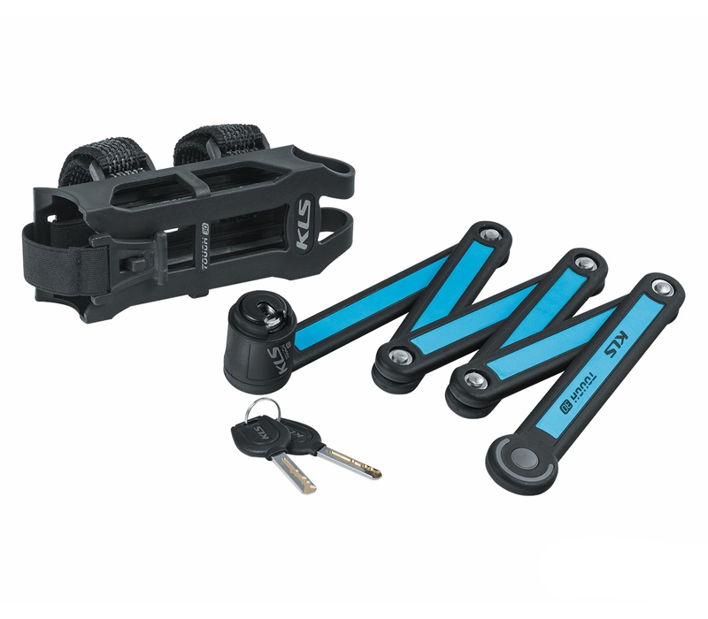 Високоякісний складний велосипедний замок. Форма і технологія виготовлення замка роблять його більш безпечним, зручним і не дасть подряпати раму велосипеда. Для використання витягується із спеціального жорсткого чохла, який може бути легко прикріплений в будь-якому необхідному місці (будь то підсідельний штир, труба рами або навіть кермо). В комплекті до замка 2 ключа.